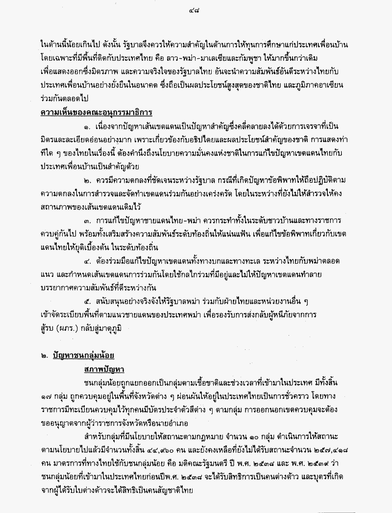 รายงานผลการพิจารณาศึกษาปัญหาชายแดนไทยกับประเทศเพื่อนบ้านซึ่งคณะกรรมาธิการวิสามัญพิจารณาเสร็จแล้ว