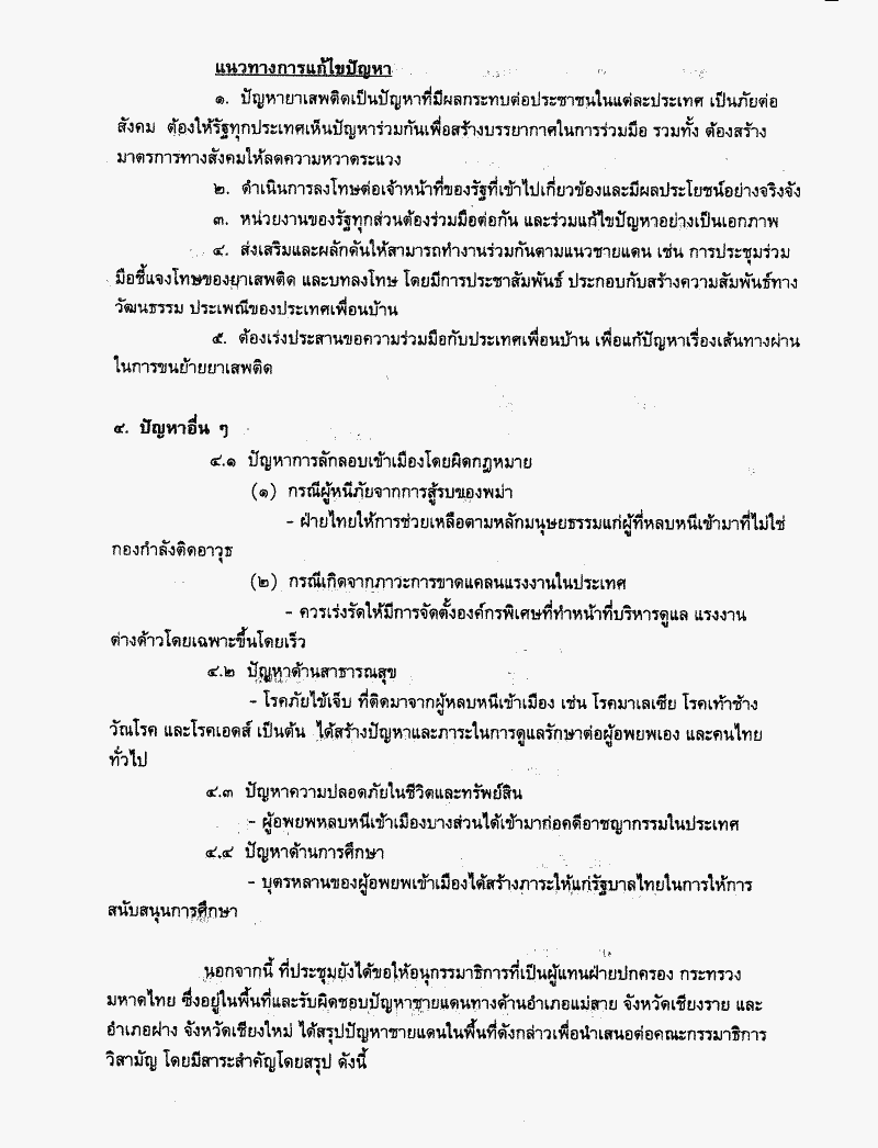 รายงานผลการพิจารณาศึกษาปัญหาชายแดนไทยกับประเทศเพื่อนบ้านซึ่งคณะกรรมาธิการวิสามัญพิจารณาเสร็จแล้ว