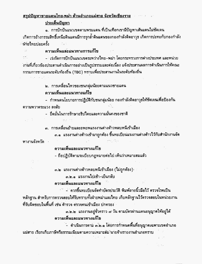 รายงานผลการพิจารณาศึกษาปัญหาชายแดนไทยกับประเทศเพื่อนบ้านซึ่งคณะกรรมาธิการวิสามัญพิจารณาเสร็จแล้ว