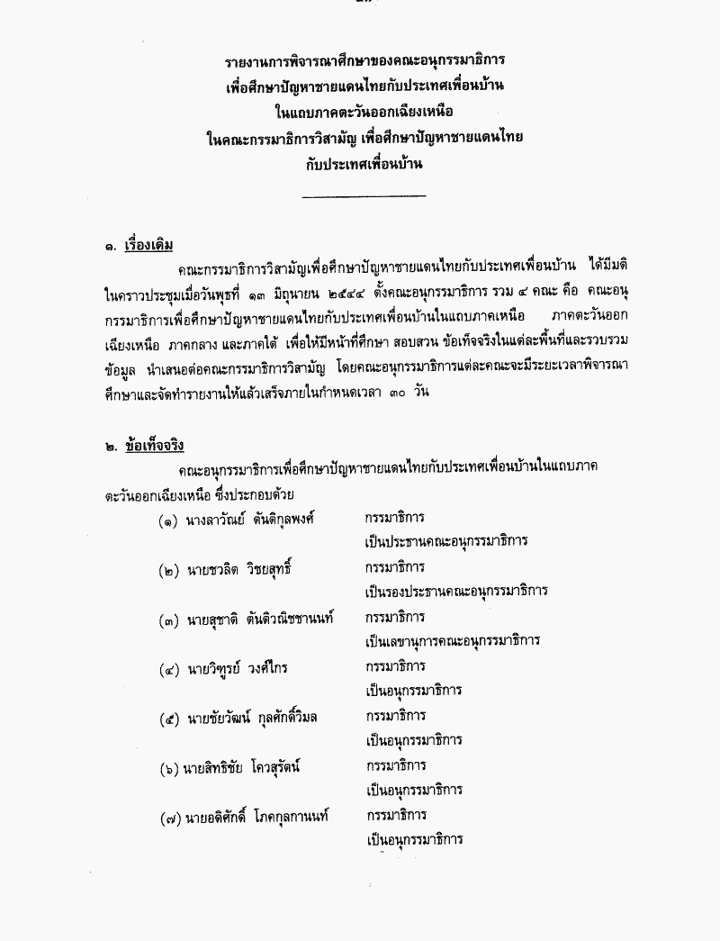รายงานผลการพิจารณาศึกษาปัญหาชายแดนไทยกับประเทศเพื่อนบ้านซึ่งคณะกรรมาธิการวิสามัญพิจารณาเสร็จแล้ว
