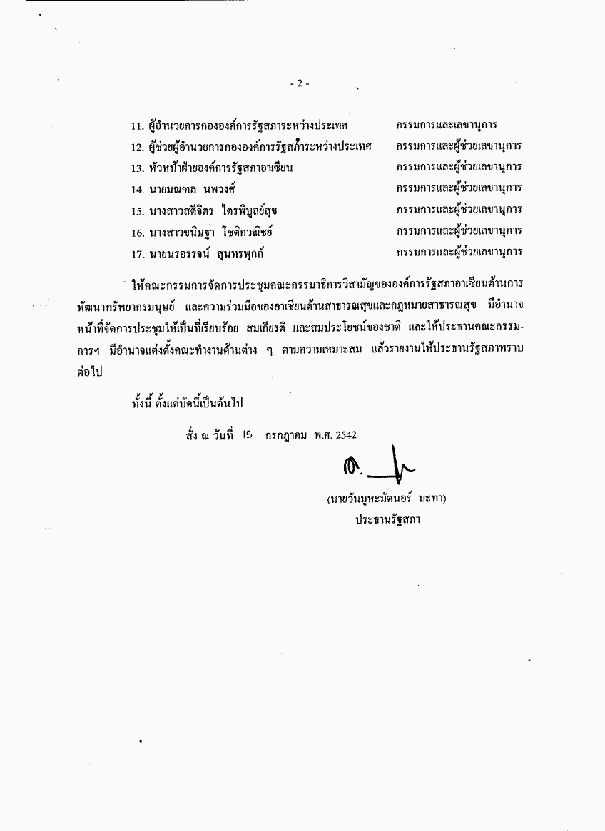 คำสั่งรฐัสภา ที่ 20/2542 เรื่อง แต่งตั้งคณะกรรมการจัดการประชุมคณะกรรมาธิการวิสามัญขององค์การรัฐสภาอาเซียน |