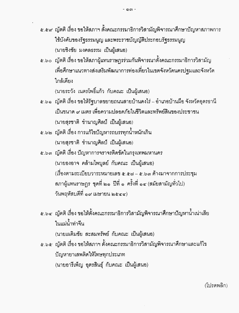• ระเบียบวาระการประชุมสภาผู้แทนราษฎร ชุดที่ 21 ปีที่ 2 ครั้งที่ 4 (สมัยสามัญทั่วไป) วันพฤหัสบดีที่ 14 กุมภาพันธ์ 2545