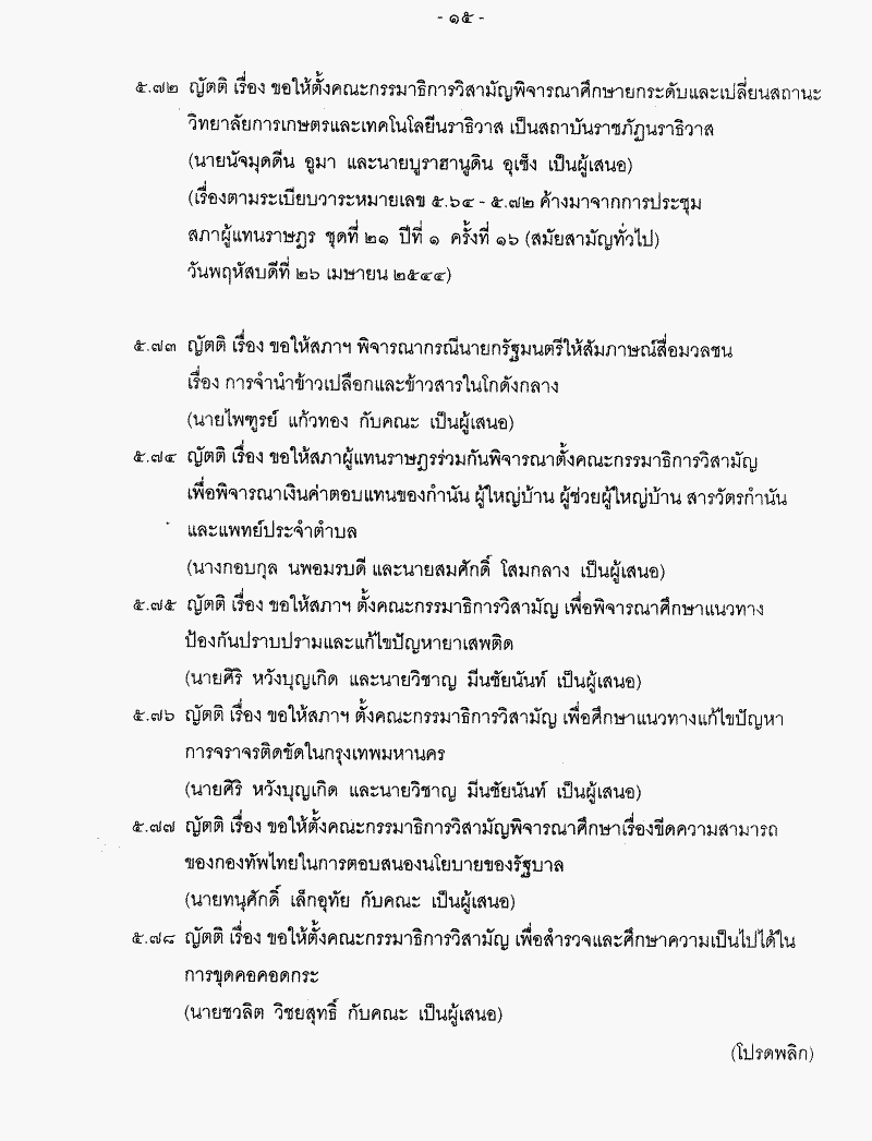 • ระเบียบวาระการประชุมสภาผู้แทนราษฎร ชุดที่ 21 ปีที่ 2 ครั้งที่ 4 (สมัยสามัญทั่วไป) วันพฤหัสบดีที่ 14 กุมภาพันธ์ 2545