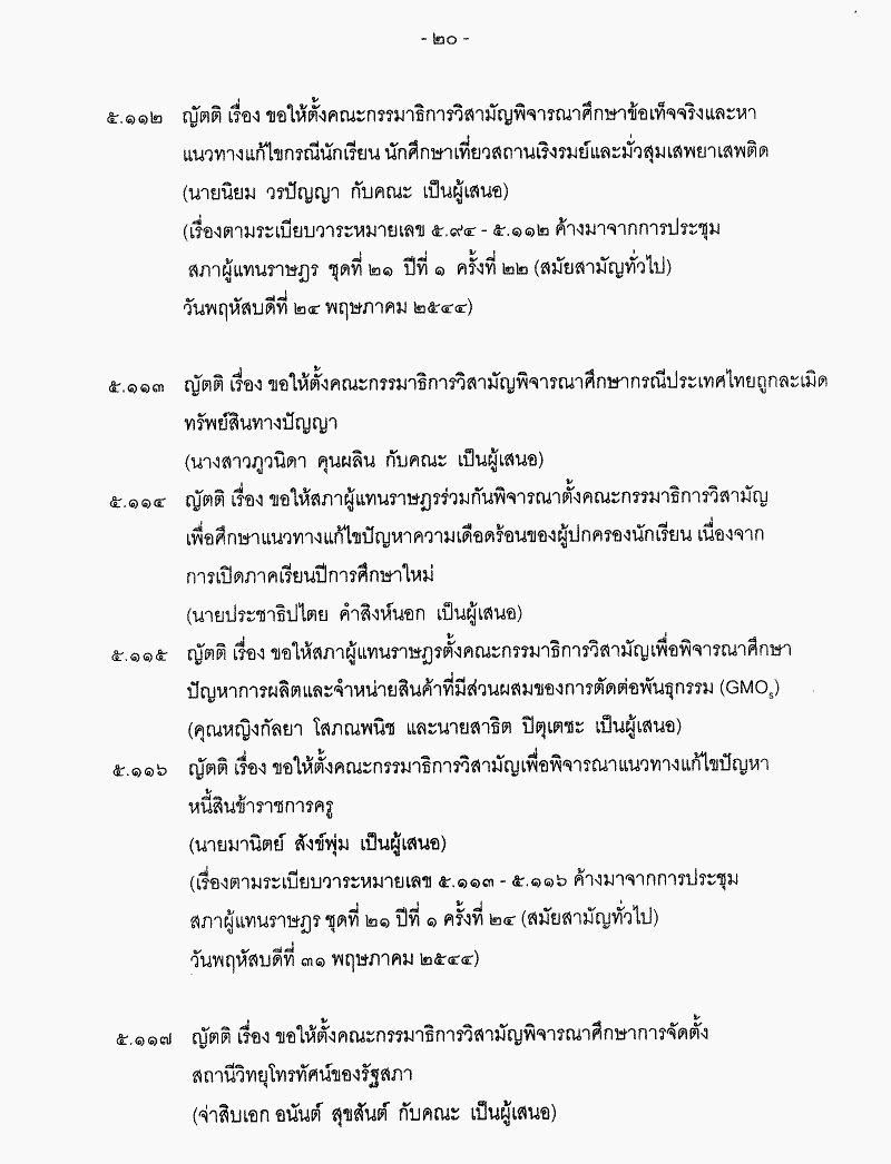 • ระเบียบวาระการประชุมสภาผู้แทนราษฎร ชุดที่ 21 ปีที่ 2 ครั้งที่ 4 (สมัยสามัญทั่วไป) วันพฤหัสบดีที่ 14 กุมภาพันธ์ 2545