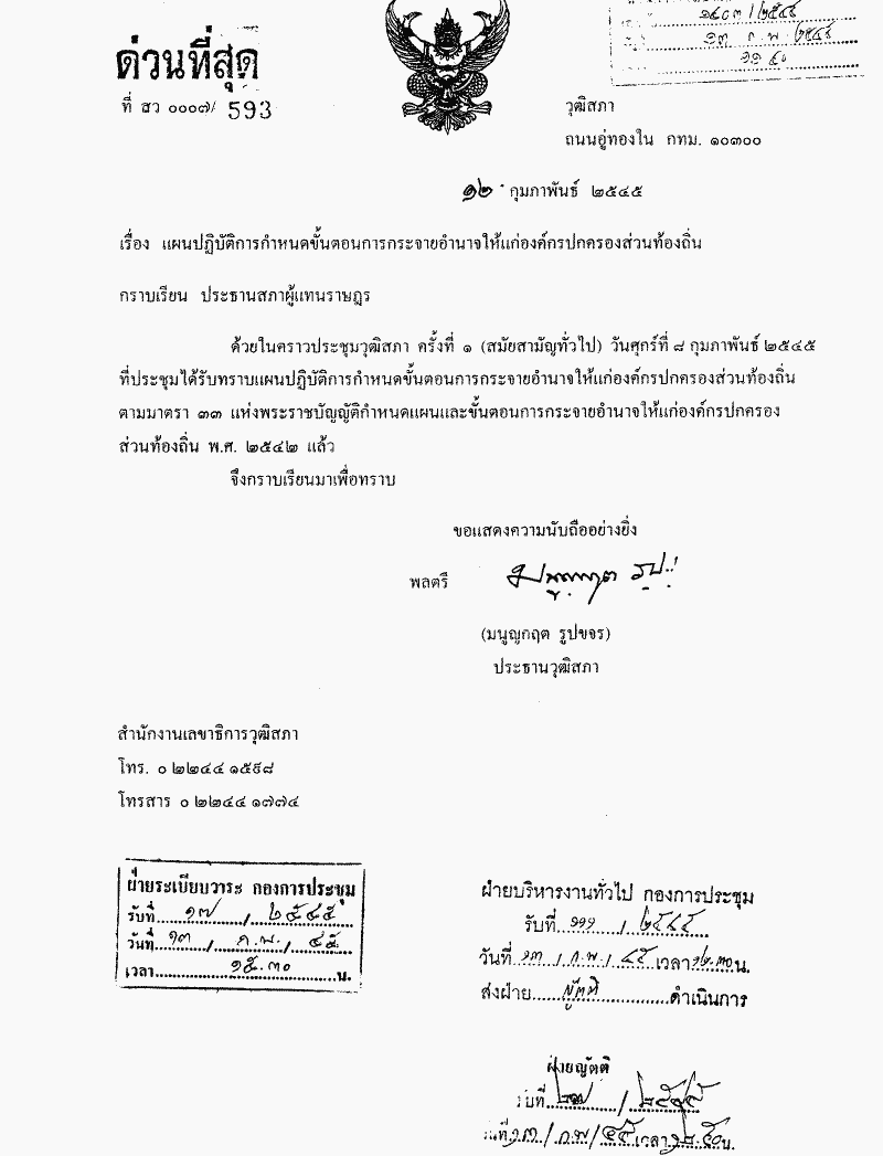 รับทราบเรื่องวุฒิสภาได้รับทราบแผนปฏิบัติการกำหนดขั้นตอนการกระจายอำนาจให้แก่องค์กรปกครองส่วนท้องถิ่น |
