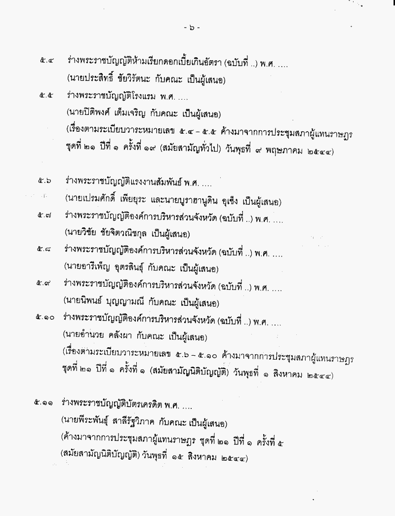ชื่อเอกสาร : ระเบียบวาระการประชุมสภาผู้แทนราษฎร ชุดที่ 21 ปีที่ 2 ครั้งที่ 5 (สมัยสามัญทั่วไป) วันพุธที่ 20 กุมภาพันธ์ 2545
