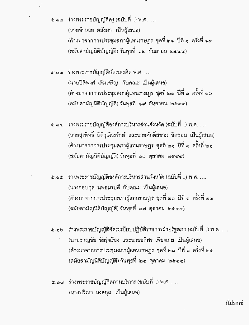 • ระเบียบวาระการประชุมสภาผู้แทนราษฎร > ชุดที่ 21 > ปีที่ 2 > สมัยสามัญทั่วไป > ครั้งที่ 5