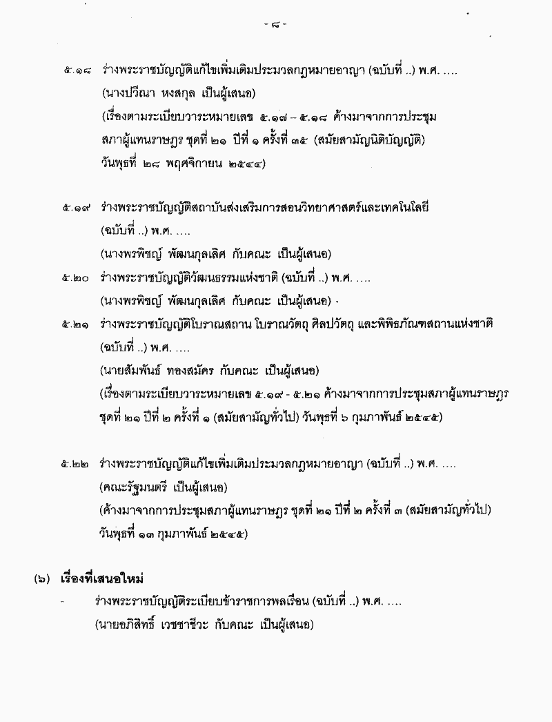• ระเบียบวาระการประชุมสภาผู้แทนราษฎร > ชุดที่ 21 > ปีที่ 2 > สมัยสามัญทั่วไป > ครั้งที่ 5