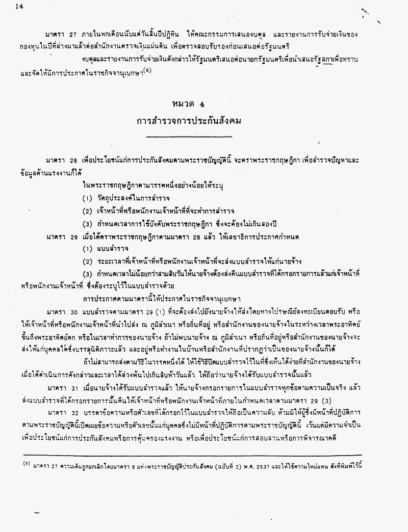 • รับทราบรายงานการตรวจสอบงบดุล งบรายวัน - รายจ่ายเงินกองทุนประกันสังคมประจำปี 2543