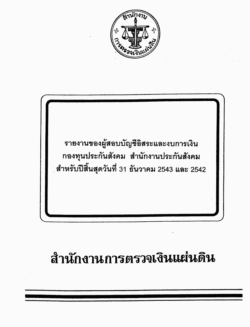• รายงานการตรวจสอบงบดุล งบรายวัน - รายจ่ายเงินกองทุนประกันสังคมประจำปี 2543