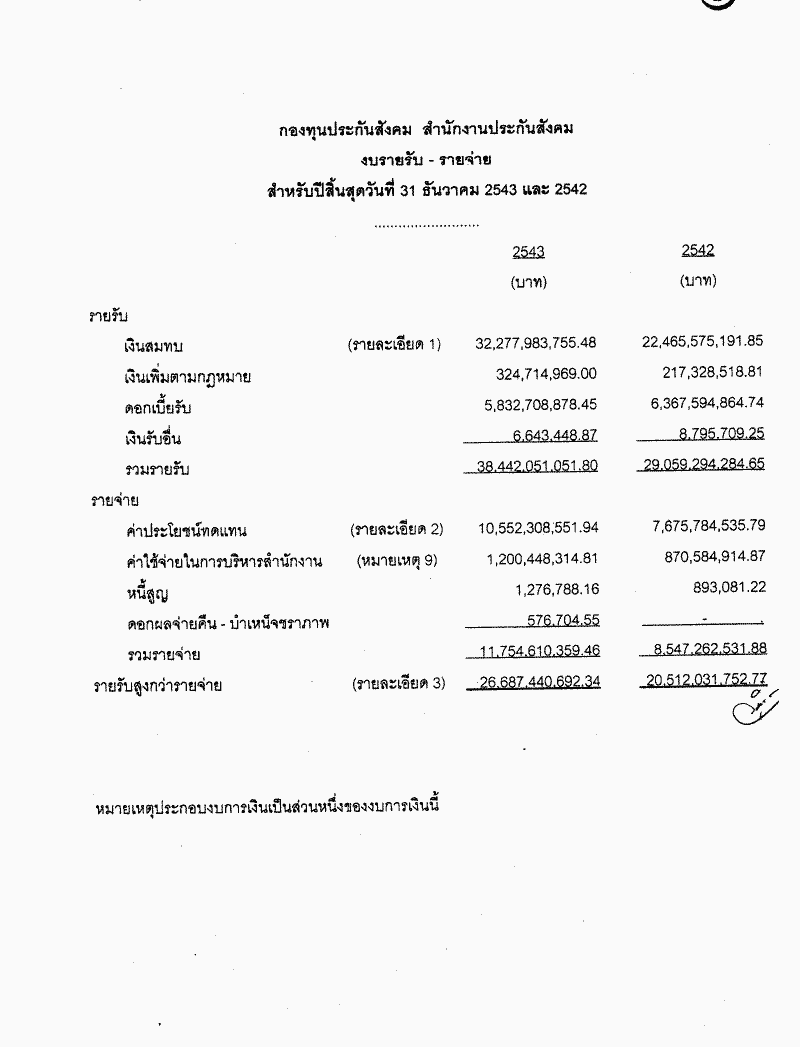 • รับทราบรายงานการตรวจสอบงบดุล งบรายวัน - รายจ่ายเงินกองทุนประกันสังคมประจำปี 2543