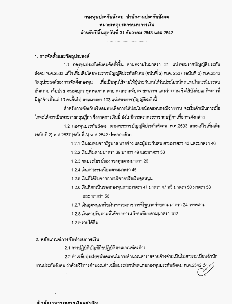 • รับทราบรายงานการตรวจสอบงบดุล งบรายวัน - รายจ่ายเงินกองทุนประกันสังคมประจำปี 2543