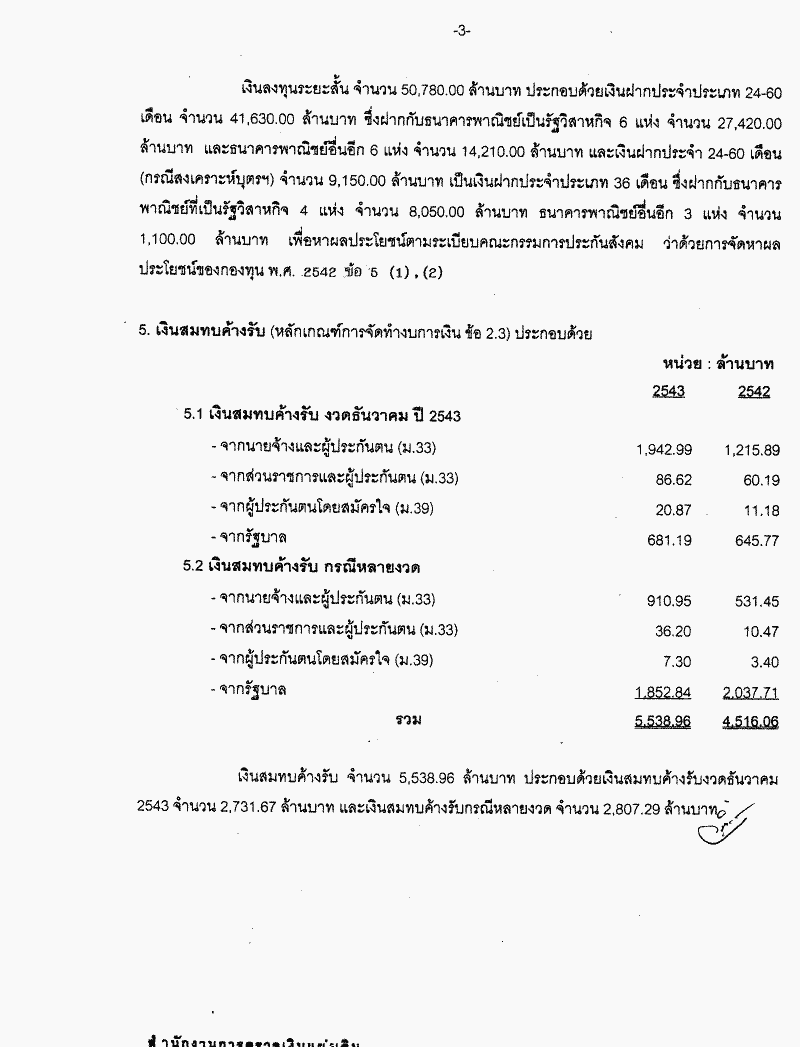 • รับทราบรายงานการตรวจสอบงบดุล งบรายวัน - รายจ่ายเงินกองทุนประกันสังคมประจำปี 2543