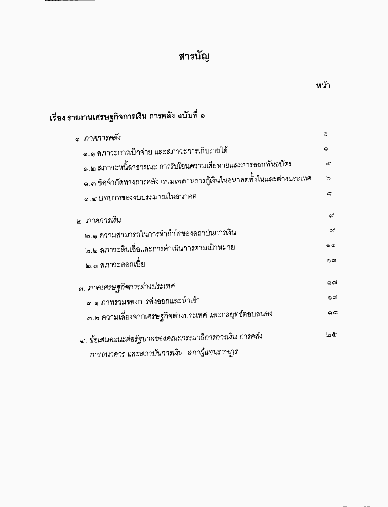 รายงานผลการพิจารณาศึกษาสภาพรวมเศรษฐกิจการเงิน การคลัง ของประเทศเป็นรายไตรมาส