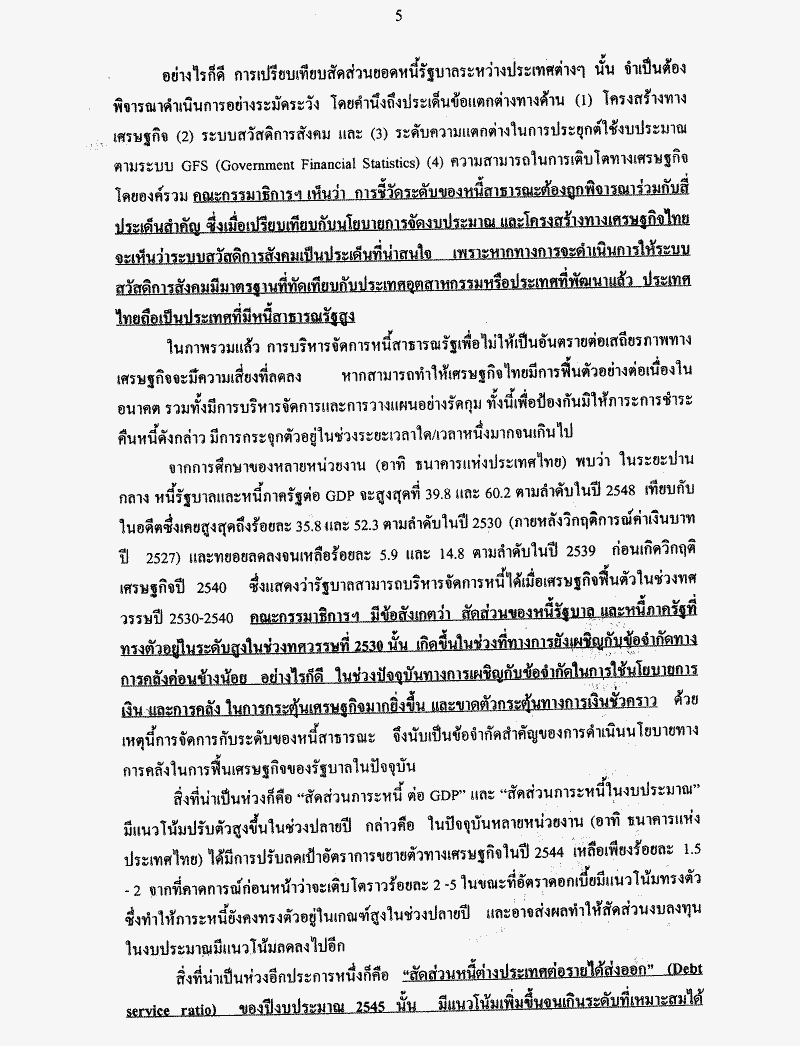 รายงานผลการพิจารณาศึกษาสภาพรวมเศรษฐกิจการเงิน การคลัง ของประเทศเป็นรายไตรมาส