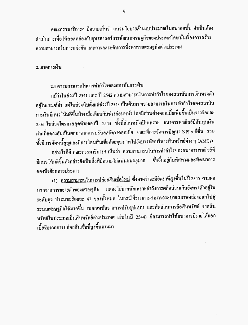 รายงานผลการพิจารณาศึกษาสภาพรวมเศรษฐกิจการเงิน การคลัง ของประเทศเป็นรายไตรมาส
