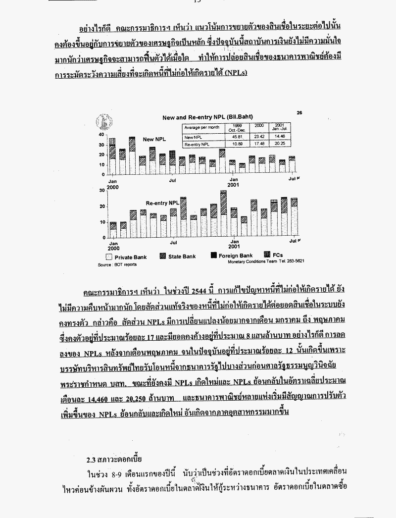รายงานผลการพิจารณาศึกษาสภาพรวมเศรษฐกิจการเงิน การคลัง ของประเทศเป็นรายไตรมาส