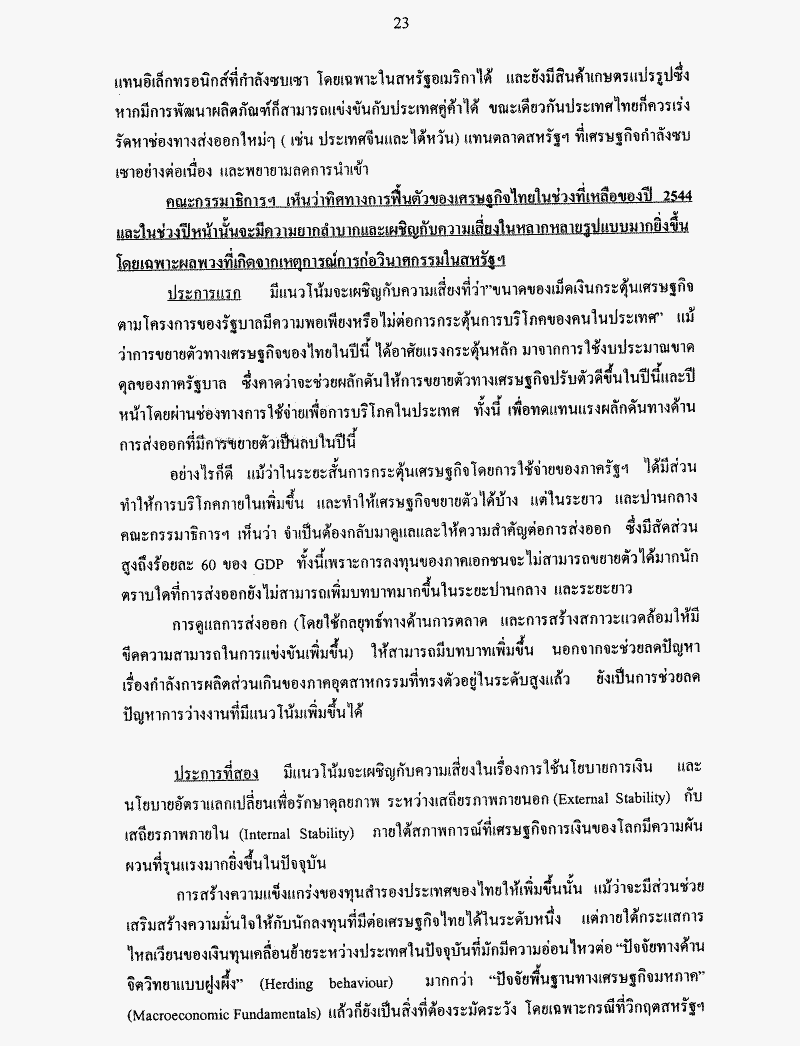 รายงานผลการพิจารณาศึกษาสภาพรวมเศรษฐกิจการเงิน การคลัง ของประเทศเป็นรายไตรมาส
