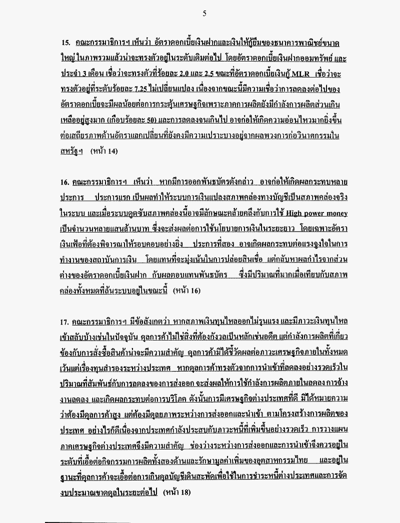 รายงานผลการพิจารณาศึกษาสภาพรวมเศรษฐกิจการเงิน การคลัง ของประเทศเป็นรายไตรมาส