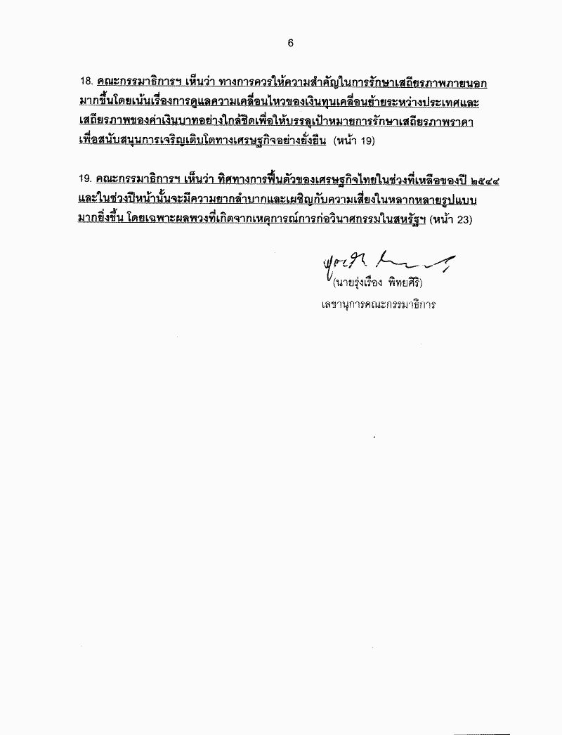 รายงานผลการพิจารณาศึกษาสภาพรวมเศรษฐกิจการเงิน การคลัง ของประเทศเป็นรายไตรมาส