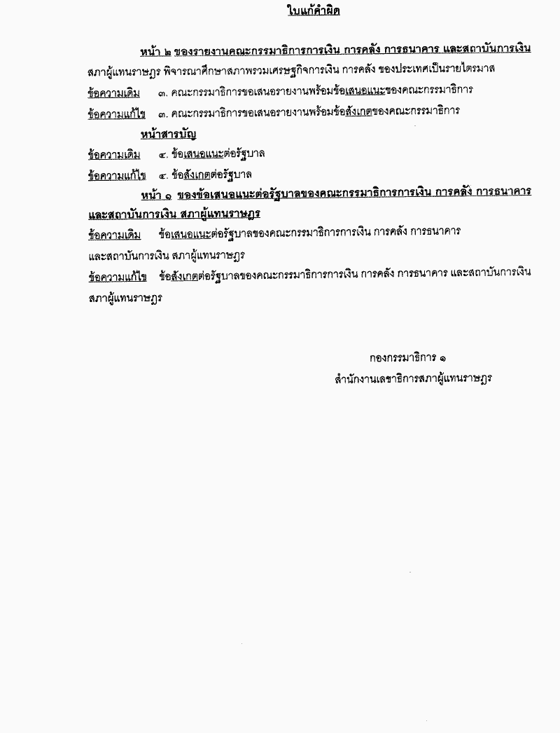 รายงานผลการพิจารณาศึกษาสภาพรวมเศรษฐกิจการเงิน การคลัง ของประเทศเป็นรายไตรมาส