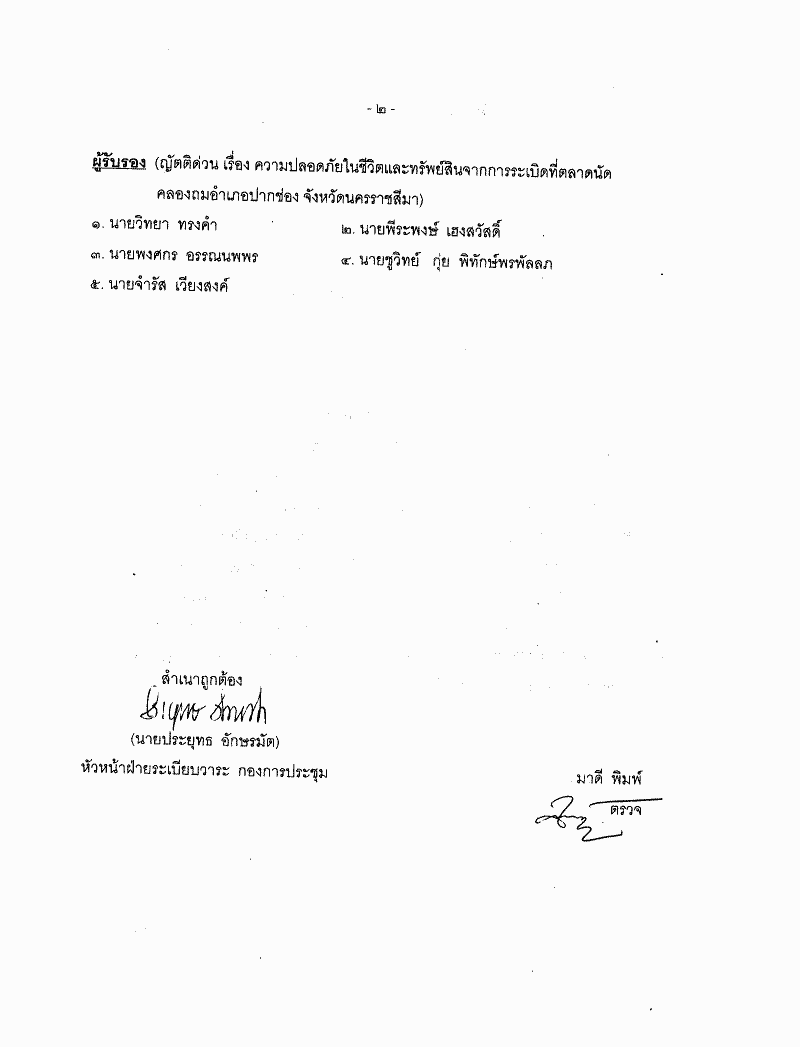 • ขอเสนอญัตติด่วน เรื่อง เรื่อง ความปลอดภัยในชีวิตและทรัพย์สินจากการระเบิดที่ตลาดนัดคลองถม อำเภอปากช่อง จังหวัดนครราชสีมา