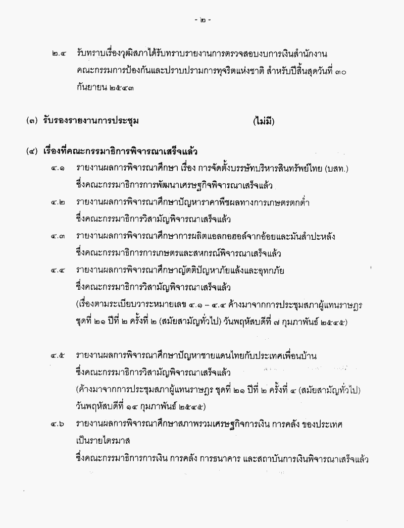 ระเบียบวาระการประชุมสภาผู้แทนราษฎร ชุดที่ 21 ปีที่ 2 ครั้งที่ 6 (สมัยสามัญทั่วไป) วันพฤหัสบดีที่ 21 กุมภาพันธ์ 2545 |