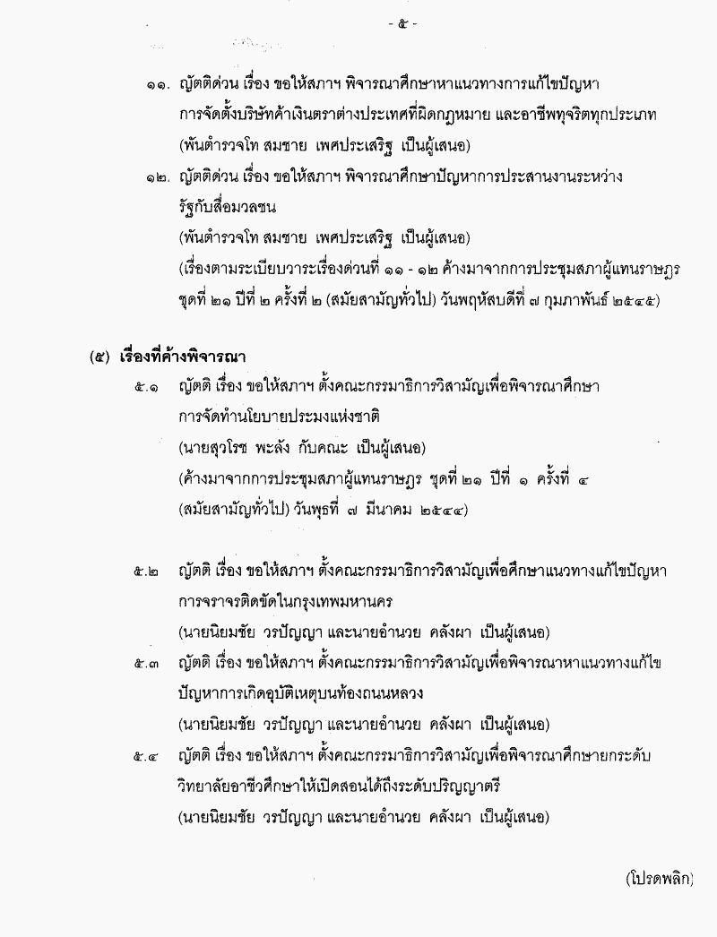 • ระเบียบวาระการประชุมสภาผู้แทนราษฎร ชุดที่ 21 ปีที่ 2 ครั้งที่ 6 (สมัยสามัญทั่วไป) วันพฤหัสบดีที่ 21 กุมภาพันธ์ 2545