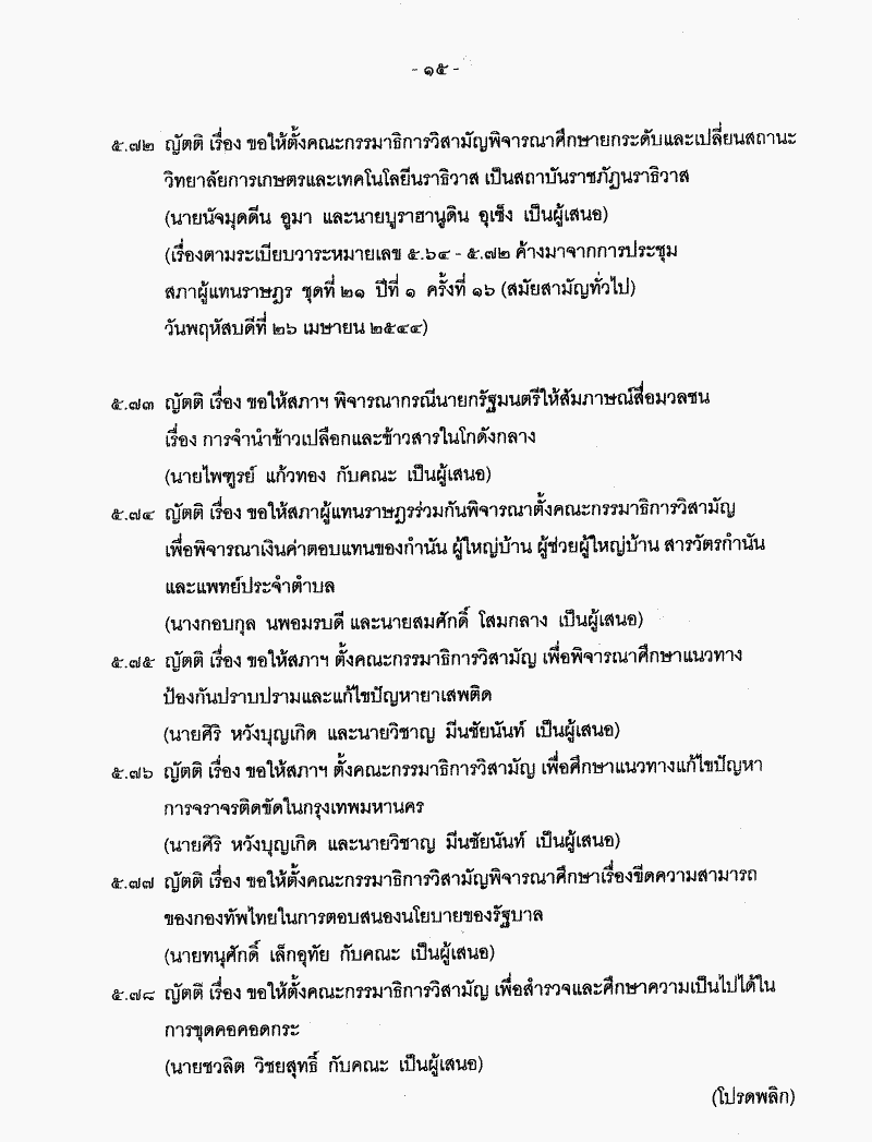 • ระเบียบวาระการประชุมสภาผู้แทนราษฎร ชุดที่ 21 ปีที่ 2 ครั้งที่ 6 (สมัยสามัญทั่วไป) วันพฤหัสบดีที่ 21 กุมภาพันธ์ 2545