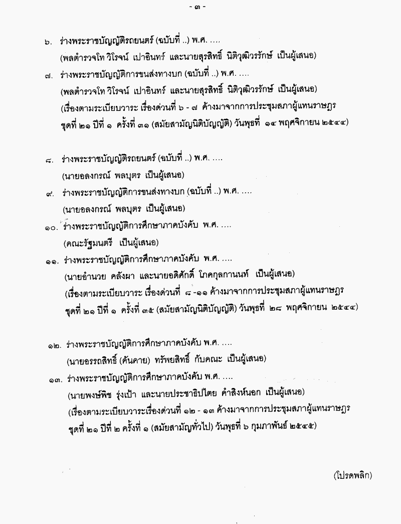 • ระเบียบวาระการประชุมสภาผู้แฑนราษฎร ชุดที่ 21 ปีที่ 2 ครั้งที่ 12 (สมัยสามัญทั่วไป) วันพุธที่ 20 มีนาคม 2545