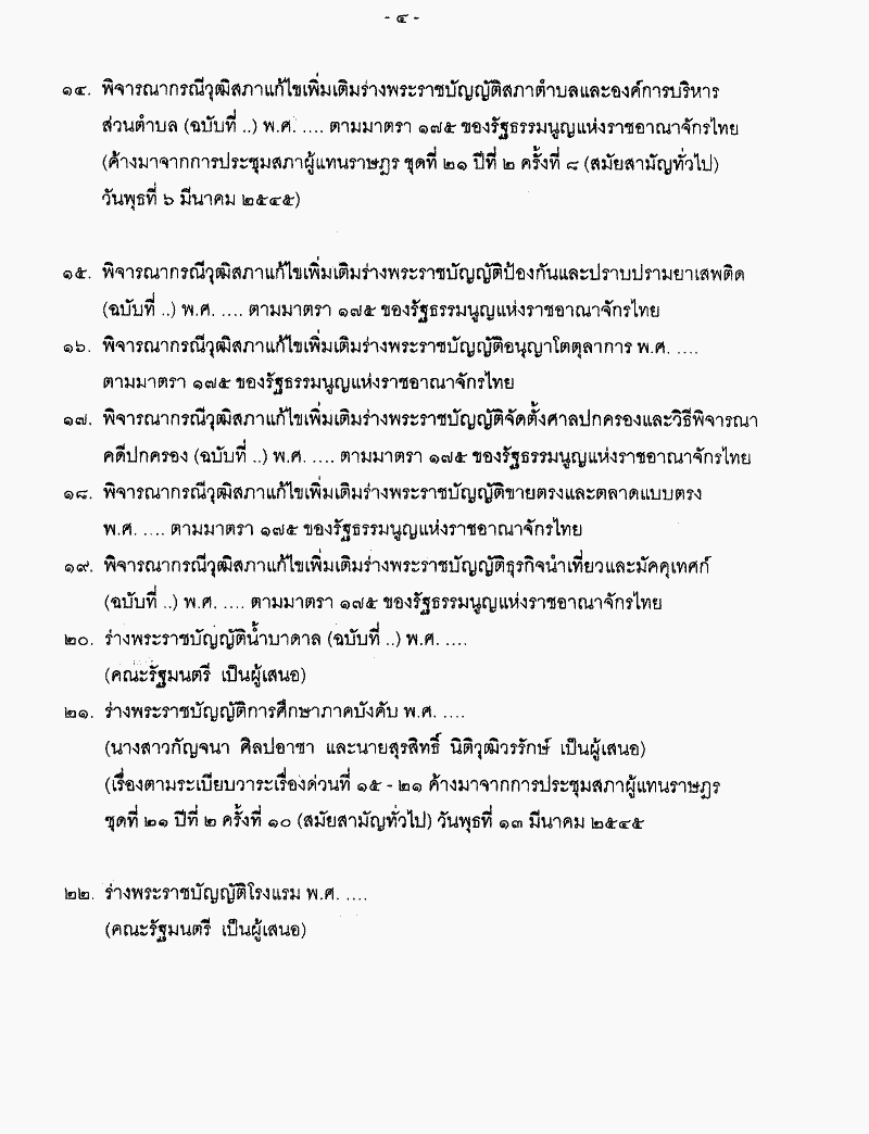 • ระเบียบวาระการประชุมสภาผู้แฑนราษฎร ชุดที่ 21 ปีที่ 2 ครั้งที่ 12 (สมัยสามัญทั่วไป) วันพุธที่ 20 มีนาคม 2545