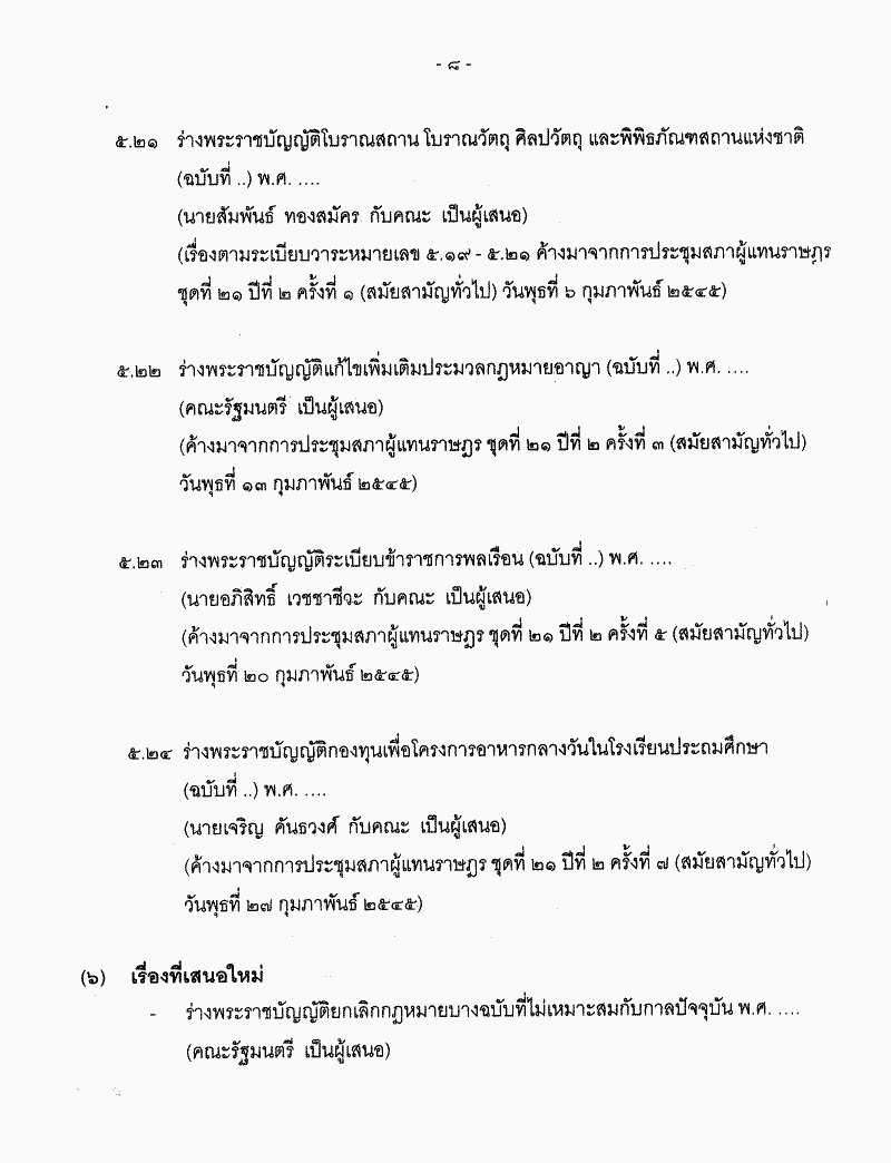 ระเบียบวาระการประชุมสภาผู้แฑนราษฎร ชุดที่ 21 ปีที่ 2 ครั้งที่ 12 (สมัยสามัญทั่วไป) วันพุธที่ 20 มีนาคม 2545 |