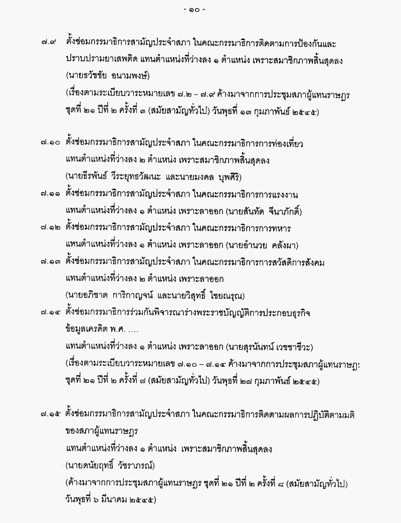 ระเบียบวาระการประชุมสภาผู้แฑนราษฎร ชุดที่ 21 ปีที่ 2 ครั้งที่ 12 (สมัยสามัญทั่วไป) วันพุธที่ 20 มีนาคม 2545 |