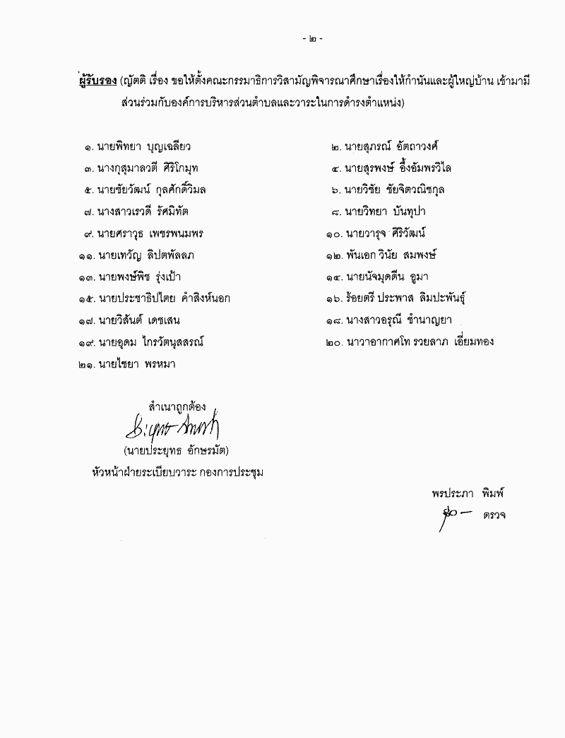 • ขอเสนอญัตติด่วน เรื่อง ขอให้ตั้งคณะกรรมาธิการวิสามัญพิจารณาศึกษาเรื่องให้กำนันและผู้ใหญ่บ้านเข้ามามีส่วนร่วมกับองค์การบริหารส่วนตำบลและวาระในการดำรงตำแหน่ง