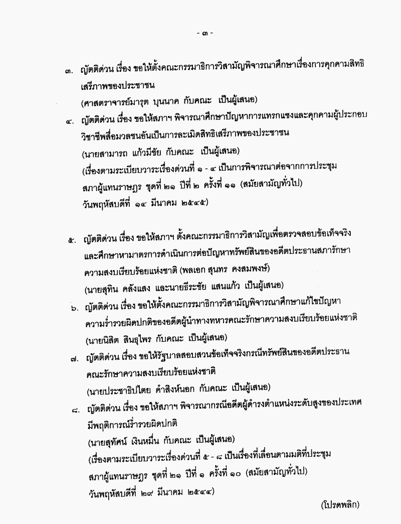• ระเบียบวาระการประชุมสภาผู้แทนราษฎร ชุดที่ 21 ปีที่ 2 ครั้งที่ 13 (สมัยสามัญทั่วไป) วันพฤหัสบดีที่ 21 มีนาคม 2545