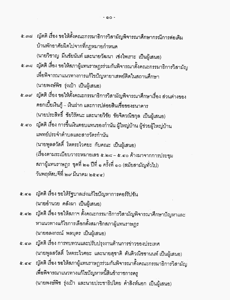 • ระเบียบวาระการประชุมสภาผู้แทนราษฎร ชุดที่ 21 ปีที่ 2 ครั้งที่ 13 (สมัยสามัญทั่วไป) วันพฤหัสบดีที่ 21 มีนาคม 2545