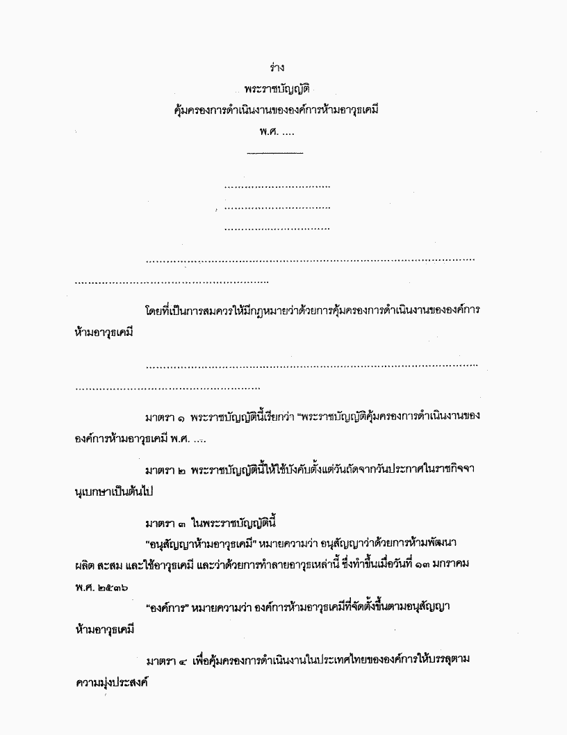 • ร่างพระราชบัญญัติคุ้มครองการดำเนินงานขององค์การห้ามอาวุธเคมี พ.ศ. ....