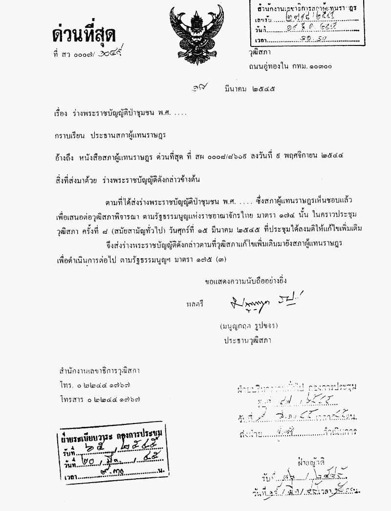 พิจารณากรณีวุฒิสภาแก้ไขเพิ่มเติมร่างพระราชบัญญัติป่าชุมชน พ.ศ..... ตามมาตรา 175 ของรัฐธรรมนูญแห่งราชอาณาจักรไทย |