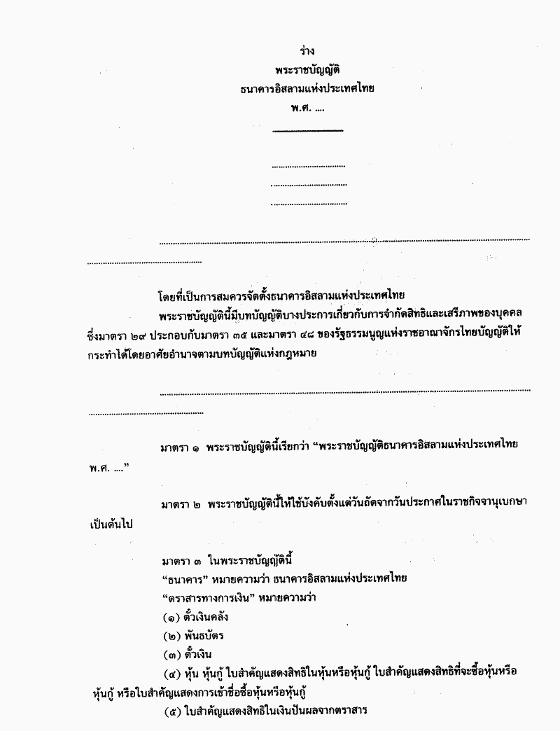 • ร่างพระราชบัญญัติธนาคารอิสลามแห่งประเทศไทย พ.ศ......