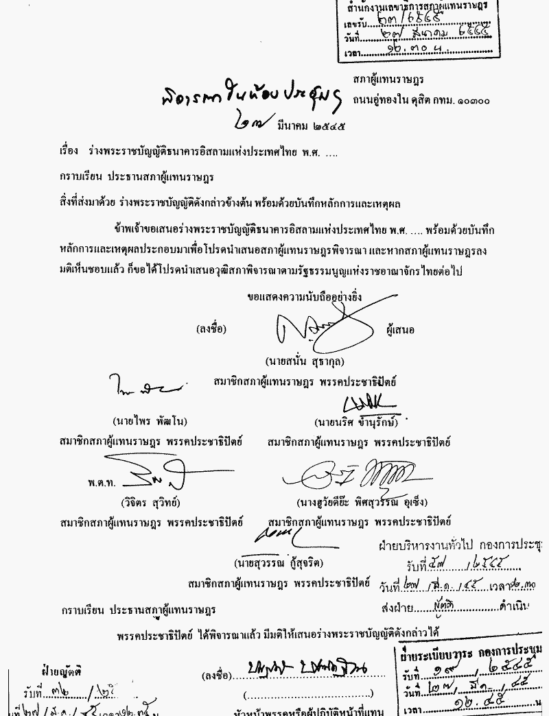ชื่อเอกสาร :   ร่างพระราชบัญญัติธนาคารอิสลามแห่งประเทศไทย พ.ศ.....