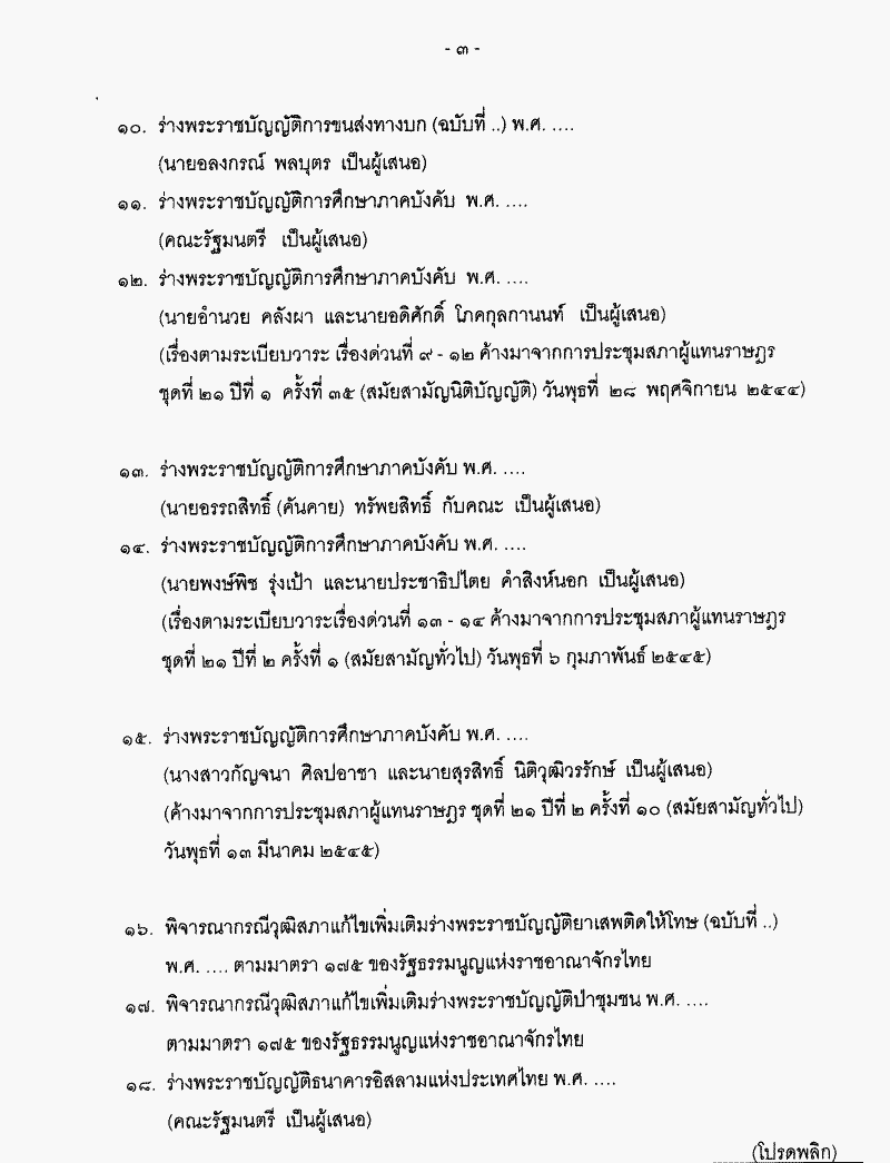 • ระเบียบวาระการประชุมสภาผู้แทนราษฎร ชุดที่ 21 ปีที่ 2 ครั้งที่ 14 (สมัยสามัญทั่วไป) วันพุธที่ 27 มีนาคม 2545