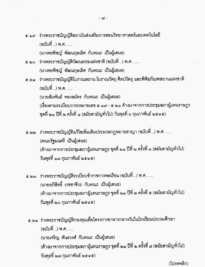 ชื่อเอกสาร :   ระเบียบวาระการประชุมสภาผู้แทนราษฎร ชุดที่ 21 ปีที่ 2 ครั้งที่ 14 (สมัยสามัญทั่วไป) วันพุธที่ 27 มีนาคม 2545