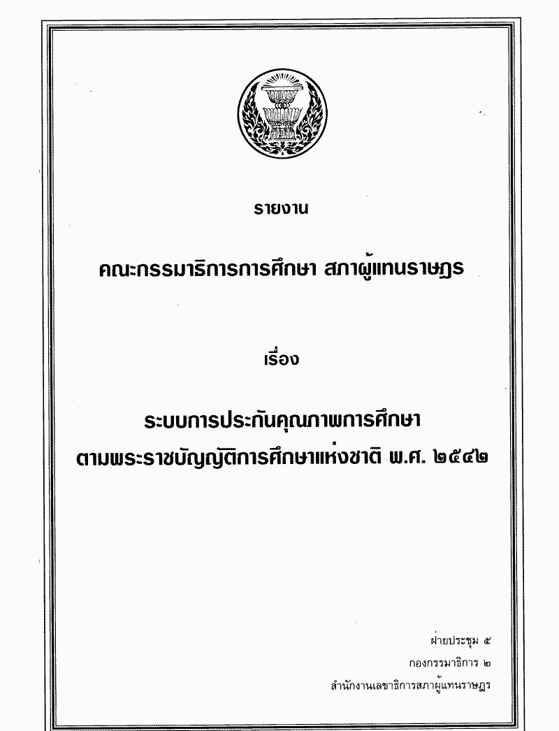 รายงานผลการพิจารณาระบบการประกันคุณภาพการศึกษาตามพระราชบัญญัติการศึกษาแห่งชาติ พ.ศ. 2542 ซึ่งคณะกรรมาธิการการศึกษาพิจารณาเสร็จแล้ว