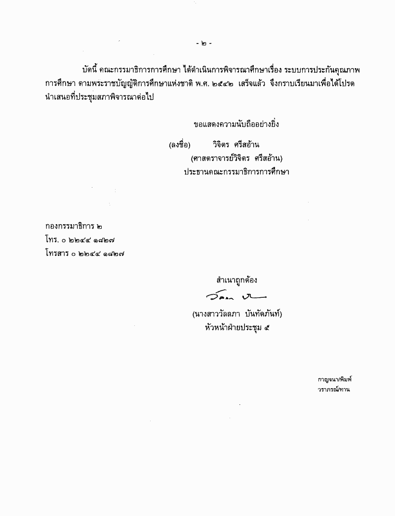 รายงานผลการพิจารณาระบบการประกันคุณภาพการศึกษาตามพระราชบัญญัติการศึกษาแห่งชาติ พ.ศ. 2542 ซึ่งคณะกรรมาธิการการศึกษาพิจารณาเสร็จแล้ว