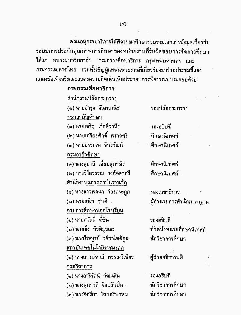 รายงานผลการพิจารณาระบบการประกันคุณภาพการศึกษาตามพระราชบัญญัติการศึกษาแห่งชาติ พ.ศ. 2542 ซึ่งคณะกรรมาธิการการศึกษาพิจารณาเสร็จแล้ว