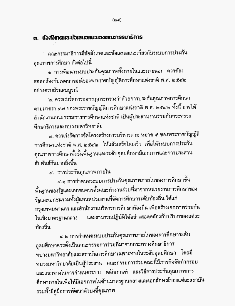 รายงานผลการพิจารณาระบบการประกันคุณภาพการศึกษาตามพระราชบัญญัติการศึกษาแห่งชาติ พ.ศ. 2542 ซึ่งคณะกรรมาธิการการศึกษาพิจารณาเสร็จแล้ว
