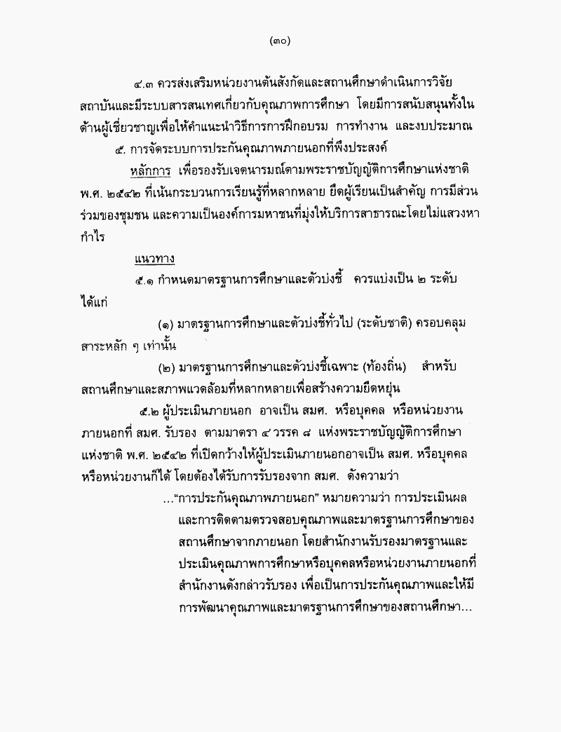 รายงานผลการพิจารณาระบบการประกันคุณภาพการศึกษาตามพระราชบัญญัติการศึกษาแห่งชาติ พ.ศ. 2542 ซึ่งคณะกรรมาธิการการศึกษาพิจารณาเสร็จแล้ว