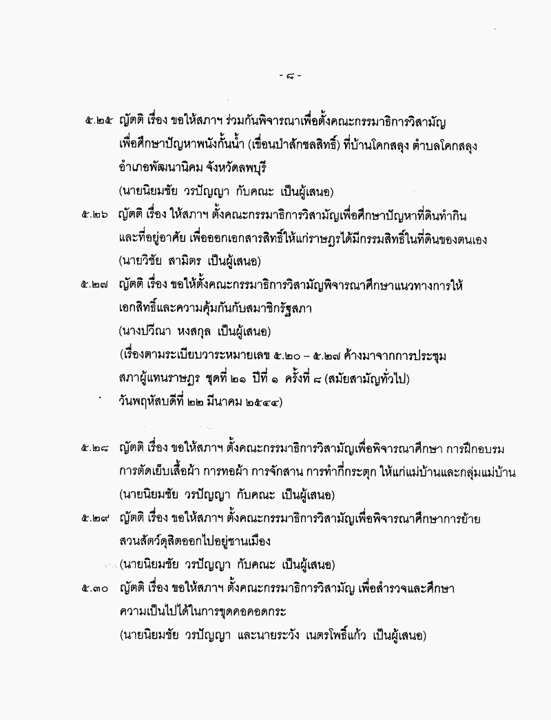 • ระเบียบวาระการประชุมสภาผู้แทนราษฎร ชุดที่ 21 ปีที่ 2 ครั้งที่ 15 (สมัยสามัญทั่วไป) วันพฤหัสบดีที่ 28 มีนาคม 2545
