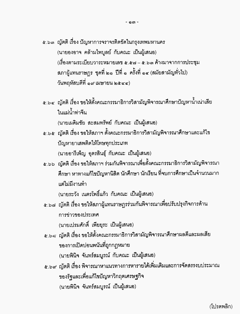 ระเบียบวาระการประชุมสภาผู้แทนราษฎร > ชุดที่ 21 > ปีที่ 2 > สมัยสามัญทั่วไป > ครั้งที่ 15
