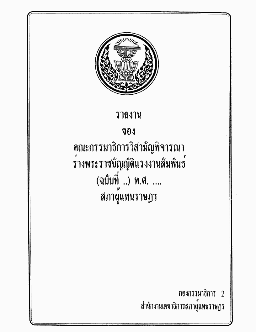 ชื่อเอกสาร :   ร่างพระราชบัญญัติแรงงานสัมพันธ์ (ฉบับที่..) พ.ศ. .... ซึ่งคณะกรรมาธิการวิสามัญพิจารณาเสร็จแล้ว